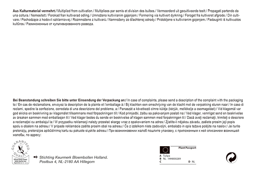 Eindrucksvolle Blüten bringt diese bewundernswerte Schönheit hervor. Falls Sie Ihre Blumenzwiebeln in Kübeln oder anderen Gefäßen pflanzen, dann sollten Sie folgendes beachten. Nach dem Setzen der Zwiebeln das Pflanzgefäß gut angießen und geschützt an der Hauswand, in der kalten Garage o.ä. oder unter Sträuchern im Garten überwintern. Die Zwiebeln benötigen zwingend eine Kühlphase, um blühfähige Blüten zu entwickeln. Nur bei Frösten unter – 10° C sollte zusätzlicher Winterschutz gegeben werden. Ab Mitte – Ende März die Gefäße aus dem Winterquartier holen und ins volle Licht stellen.