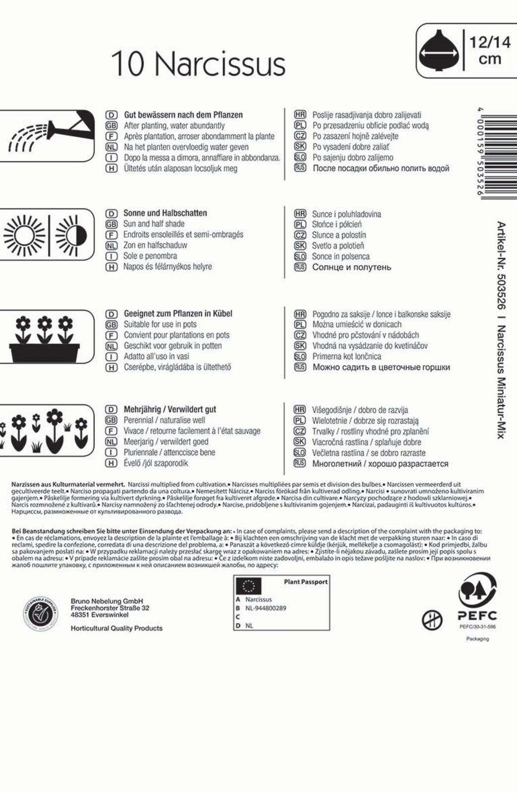 Für Narzissenliebhaber, die sich nicht auf eine Sorte festlegen möchten, ist diese Mischung aus den schönsten niedrigen Narzissen eine hervorragende Wahl! Im April färbt sich Ihr Gartenbeet in den Blütenfarben Weiß-Gelb bis Gelb-Rot und bietet gerade bei großzügiger Gruppenpflanzungen einen herrlichen Anblick. Die nur 15 cm großen Pflanzen bevorzugen sonnige bzw. halbschattige Standorte und verwildern prächtig. Wer eine weniger flächige Anzucht anstrebt, kann diese Narzissen-Mischung aber auch für die Kübel- und Hochbeetkultur nutzen.