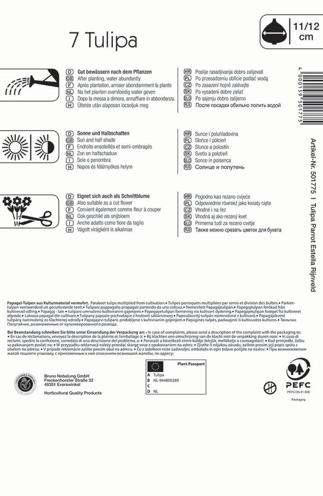 In Schneeweiß und Rosenrot präsentiert sich die bizarr marmorierte Papagei-Tulpe ‚Estella Rijnveld‘, die auch wunderbar als Schnittblume für einen herrlichen Frühlingsstrauß genutzt werden. Die extravaganten Blüten sitzen im Mai auf bis zu 50 cm hohen Stielen. Wie für Frühlingsblumen üblich, werden auch die 11/12 großen Zwiebeln der Sorte ‚Estella Rijnveld‘ schon im Herbst bzw. Winter zuvor in die Erde gepflanzt.